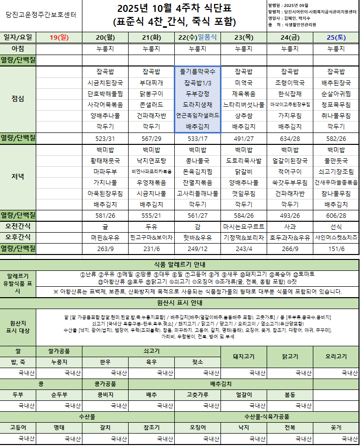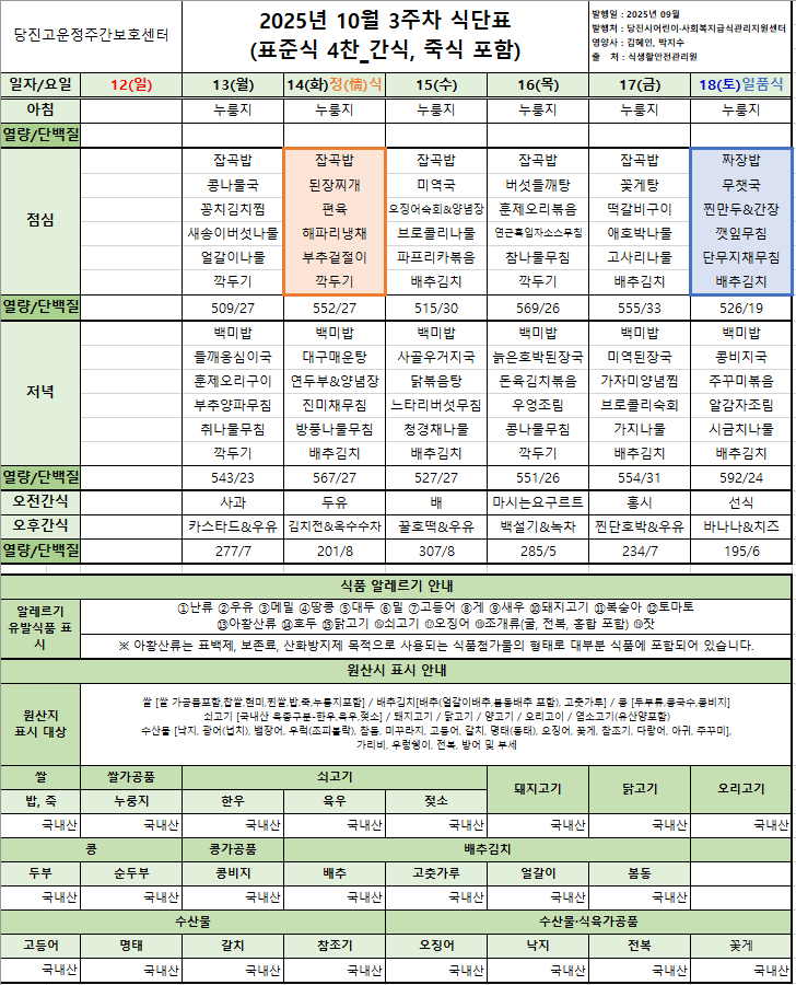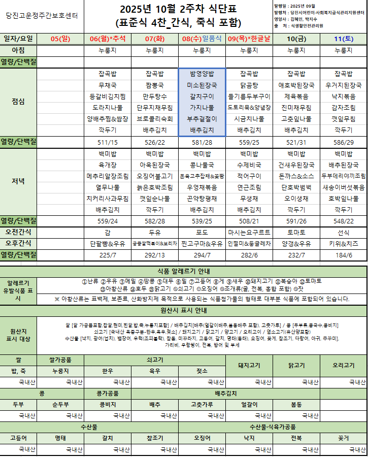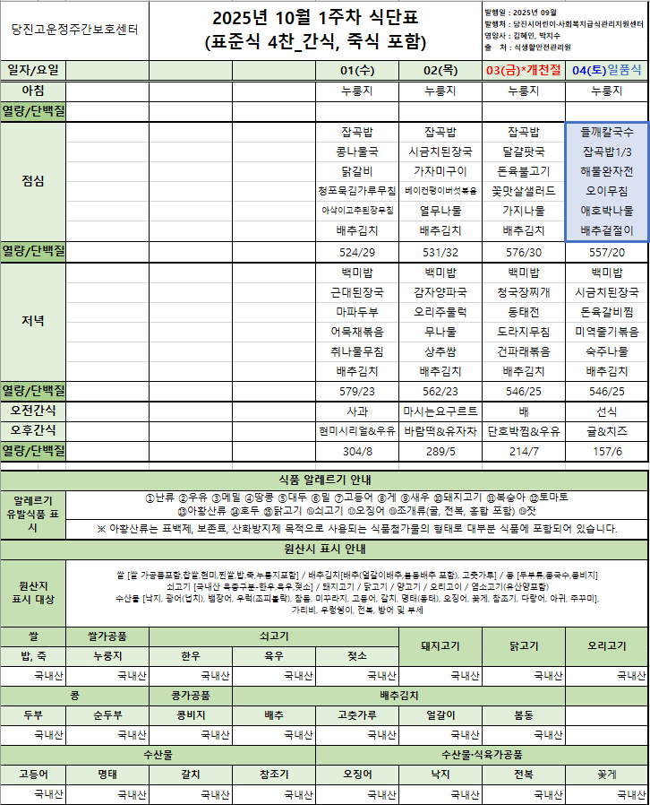 10월 식단표 관리자 211.199.109.254 2025-10-01 14:27:42 66회 첨부파일 1 첨부파일 2 첨부파일 3 첨부파일 4 첨부파일 5 목록 글쓰기 등록된 댓글이 없습니다.