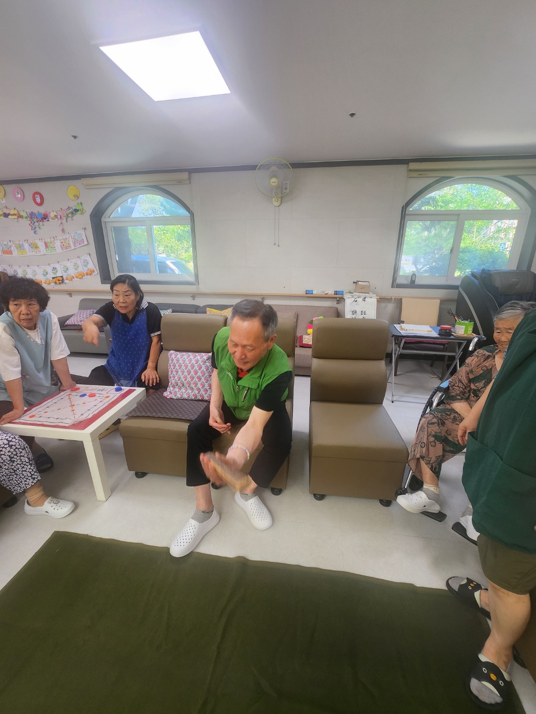 한분씩 나눠서 윷을 던지고, 나온 윷에 맞는 말 이동을 생각해보고, 어떤 방식으로 말을 움직일지 같이 고민해보는 시간이였습니다. 윷을 던져서 기분이 좋고, 상대방과 경쟁을 하여 더욱 재미있는 인지프로그램 시간이였습니다.